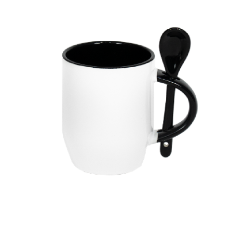 CANECA CERAMICA 325ML BRANCA CONICA C/ COLHER INTERIOR E ALÇA PRETA - JKB
